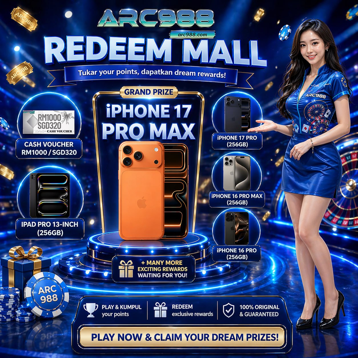 ARC988 马来西亚在线赌场是最受欢迎的赌场。 在这里,玩家们来享受赌场游戏的乐趣,并以此赢得丰厚的赌场奖励。 此外,ARC988赌场还 提供免费赌场积分和令人惊叹的游戏平台。